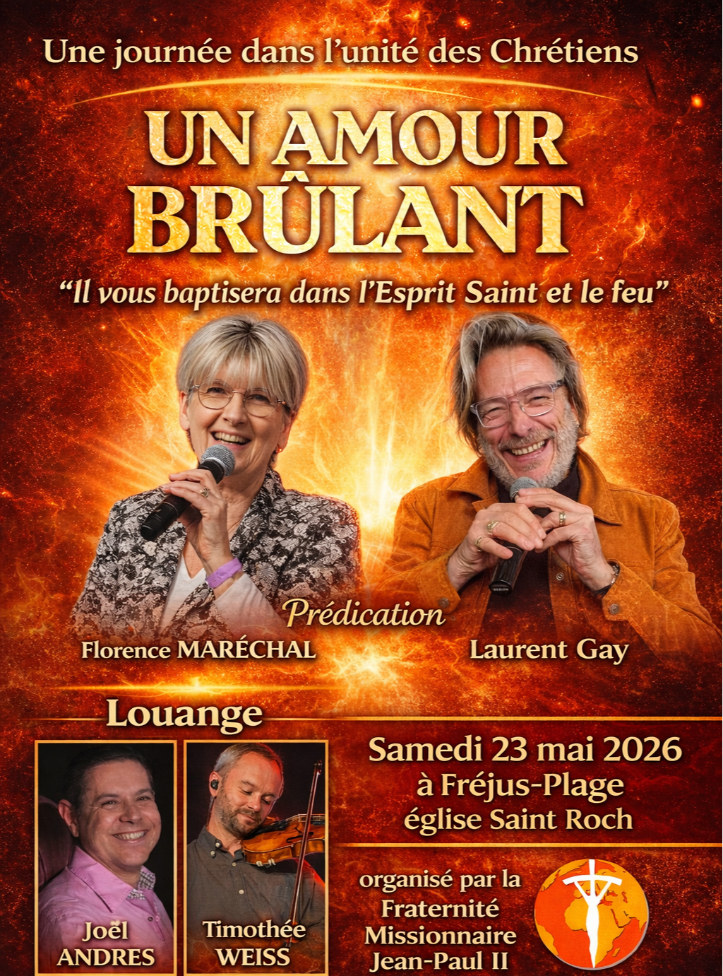 La Fraternité Missionnaire Jean-Paul II est heureuse de vous inviter à une journée remplie d'onction. Prédication, témoignages, prière pour demander la guérison, partage fraternel.